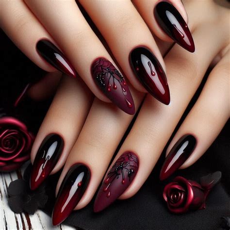 Gothic nail designs evoke an enigmatic aura that exudes a sense of intrigue and allure. They embrace dark and muted tones, such as deep reds, blacks, and purples, which create a captivating and alluring aesthetic. The intricate patterns and symbols associated with the gothic style, such as crosses, bats, and skulls, add an element of mystery and sophistication.