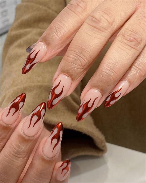 Readers, the possibilities are endless when it comes to red flame nail designs. Let your creativity soar and experiment with different styles, embellishments, and inspirations. Whether you prefer classic crimson flames, fiery ombre, or geometric infernos, embrace the power of red and set your nails ablaze with captivating designs that will leave everyone in awe.